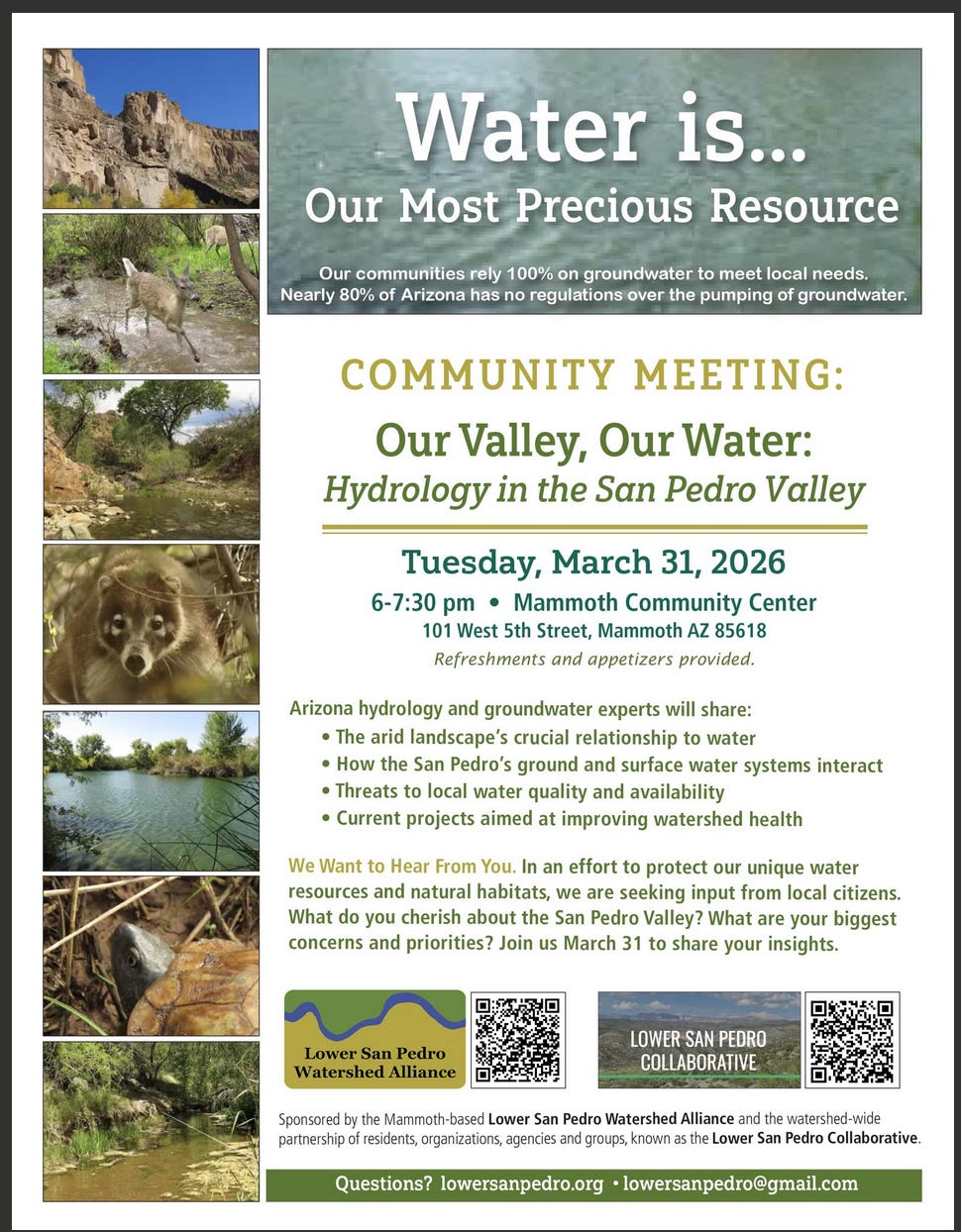 Thanks for the information and notification of the San Pedro River Watershed in Mammoth. It's much appreciated Frank!